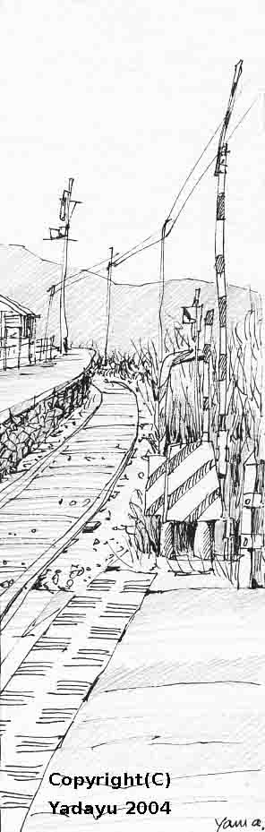 110. 飯田線・下市田駅 スケッチを再開する元気をくれた友人と、 飯田線の鄙びた駅を巡ったときの一枚。柿の名産地である。p> |