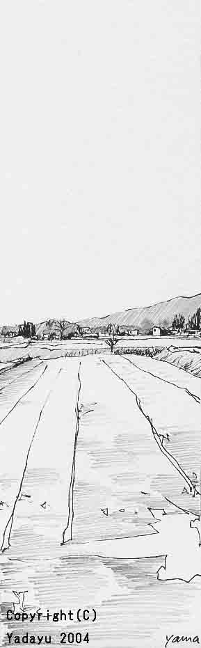 109. 伊那市の遠望 何もない風景。ただ広がりが目の前にある。 北海道の美瑛に似た雰囲気がある。今は、この近くに、 大きな総合病院がポツンと建っている。 |