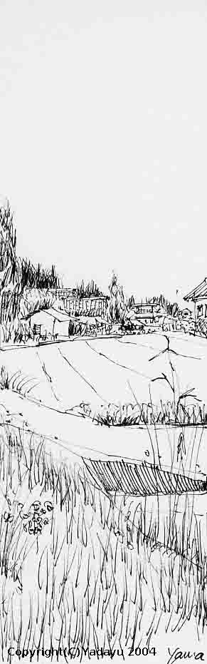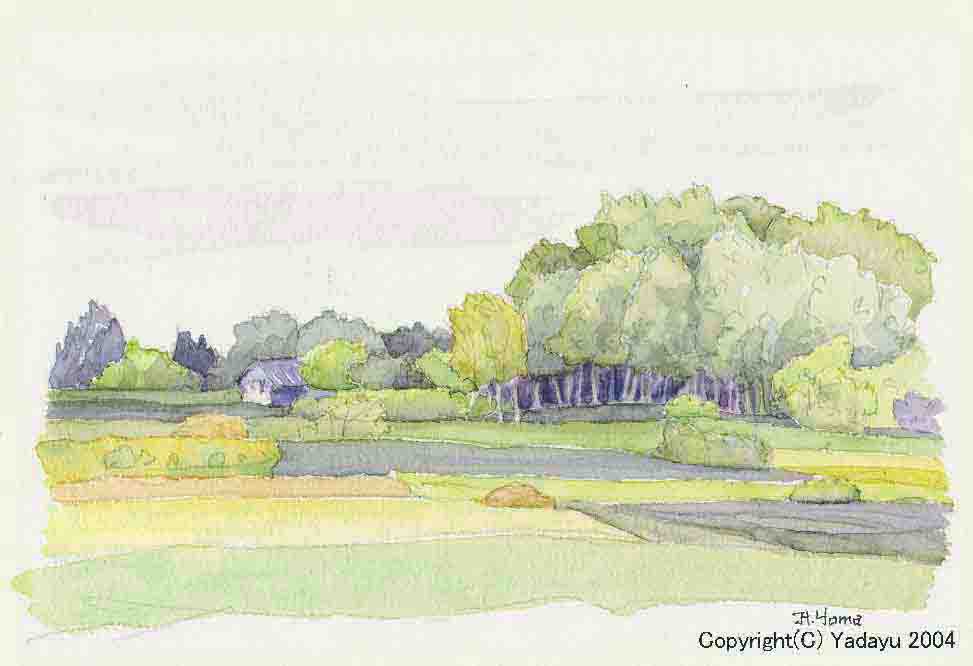 108. 長野・駒ヶ根赤穂 借家の庭から見える田園風景。 庭からスケッチが出来るなんて 何と言う贅沢なことだろうか。 駒ヶ根風景は、私を魅了してやまない。 |