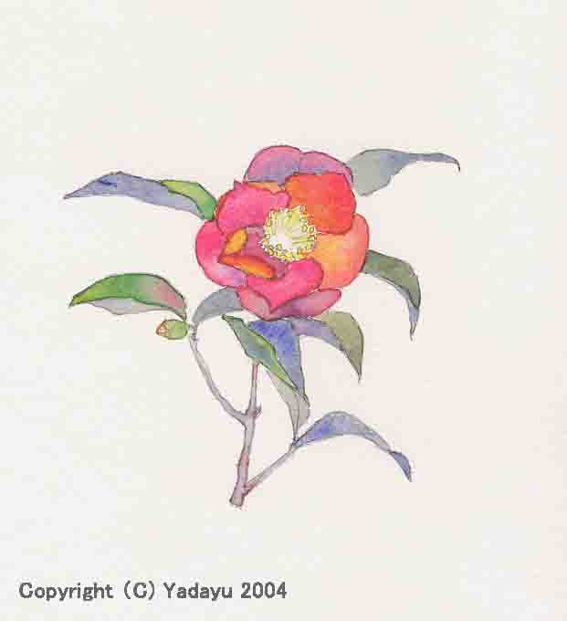 111. ツバキ('98.12) 家で咲いたツバキ。 よく見ると不思議な淀んだ赤色の花です。 |