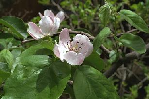 花梨(かりん)と同じ仲間の「まるめろ」。その花は、薄ピンク色の静かな花です。いくつも木に咲く様は静かななかにも雰囲気を感じさせます。この花がやがては大きな実に変わっていくのです。