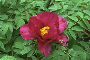 家の居間の外にある数種類のぼたんのうちの一つです。昔からの?一重の紫色。派手ではないけれども、どっしりとした花。毎年家ではぼたんの株(種類)が増えていきます。