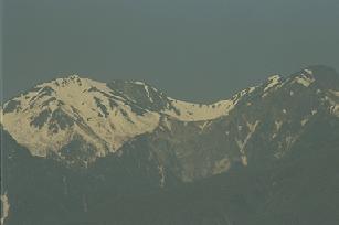 この頃になると、もう雪形も崩れてきますが、それでもまだまだ5人坊主などが見られます。もっと詳しい雪形の説明は、表紙からお入りください。(1997.5)