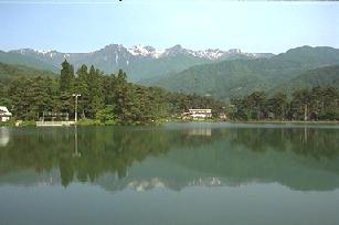 千人塚も6月を迎えてしっとりとしてきました。静かな湖面には南駒ヶ岳が浮かび、これから花菖蒲などが咲き競います。(1997.6)