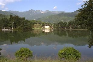 千人塚の湖面は静かになっていました。秋の南駒ヶ岳がその湖面に姿を映し、静かな湖畔となり、森の陰ではなく、森の奥には湖面の分身の本物の南駒ヶ岳があります。コスモスも周辺には咲き、春の桜の祭りなどの賑やかさとはひと味違った湖畔からの山の姿です。(1997.9)