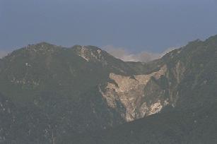 秋の南駒ヶ岳直下の様子ですが、しっかり崩壊が進んでいます。山が少しずつ崩れて形を変えていっているのですが、こうした姿もいつまで残っているのでしょうか。何百年後にはこの姿もどうなっているのだろう。静かな別世界の「摺鉢窪」もこうして面積が減っていく。自然の動きには逆らえません。(1997.9)