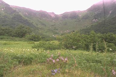 ここは、すり鉢状の一帯が高山植物・樹木でいっぱいであり、聞こえるのは鳥の声の響きと流れる風の音のみ、見えるものは空と山、多くの植物・そして晴れれば麓の飯島町や南アルプスの峰峰・・喧噪など本当に全く関係のない世界です。