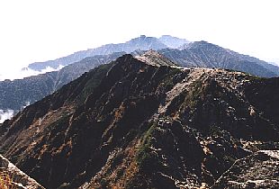 宝剣岳から南を見る 一番奥が南駒ヶ岳 1999.10.9