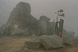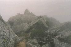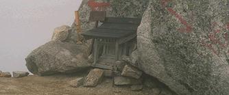 そんなに険しい頂上ではなく、ゆったりした頂です。ちょうど頂上にいた時間はあいにくガスがしっかり巻いて、まわりのアルプスは望めませんでした。ですが、自分にとってはここにいることで十分でした。景色は既に見ているし、この時は久しぶりに立てたことで十分でした。祠の裏(木曽側)には大きな石がごろごろです。