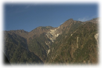 中央アルプスはもう目の前に迫ってきました。この山を越えればもう南駒ヶ岳が目の前に姿を下の方まで見せることになります。 |