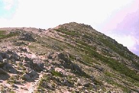 さて縦走が始まります。しばらくお付き合い下さい。 先ほどの宝剣岳を撮影した千畳敷カールの場所から上がると、極楽平という稜線に出ます。 そこから西にはこのように宝剣岳から西へ続く「三ノ沢岳」(2846m)が望めます。この山頂からは中央アルプスの稜線が見事に見ることができます。静かな頂上です。